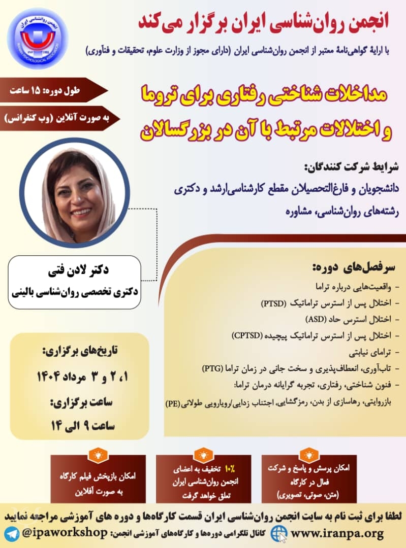 مدرس: دکتر لادن فتی (دکتری تخصصی روان‌شناسی بالینی)