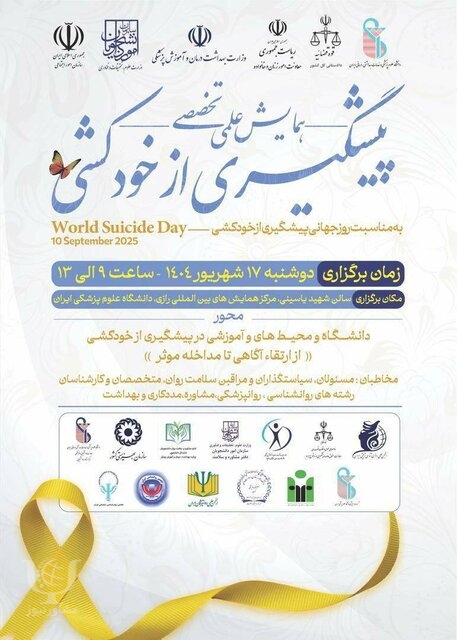 رئیس مرکز مشاوره دانشگاه علوم پزشکی ایران گفت: بهمناسبت روز جهانی پیشگیری از خودکشی (۱۰ سپتامبر/۱۹ شهریور)، دانشگاه علوم پزشکی ایران با همکاری جمعیت علمی پیشگیری از خودکشی ایران در تاریخ ۱۷ شهریور ۱۴۰۴ همایشی «علمی- تخصصی» با محوریت «پیشگیری از خودکشی در دانشگاهها و مراکز آموزشی - ارتقاء آگاهی تا مداخلات موثر» برگزار میکند.